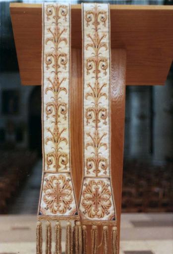 chasuble ; étole de clerc ; voile de calice ; manipule ; bourse