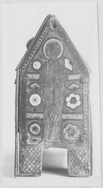 Petite en forme de maisonnette contenant des reliques de saint Blaise. Cabochons de verroterie jaunes