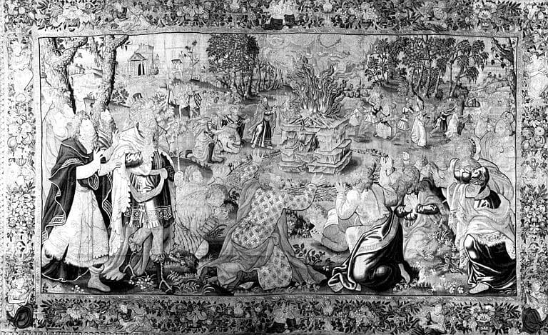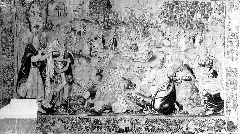 2 pièces murales : le Couronnement d'Esther, Elie et les prêtres de Baal dit aussi le prêtre va recueillir la cendre pour l'eau de purification