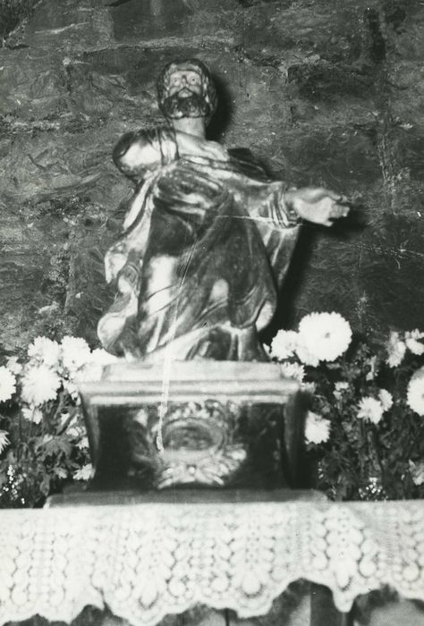 Il s'agit peut-être d'une représentation de saint Etienne, saint patron de l'église. Sa main gauche devait tenir, à l'origine, une pierre.