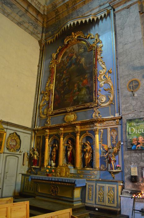 contre le mur qui touche au choeur, au dessus de l'autel de la Vierge du Carmel