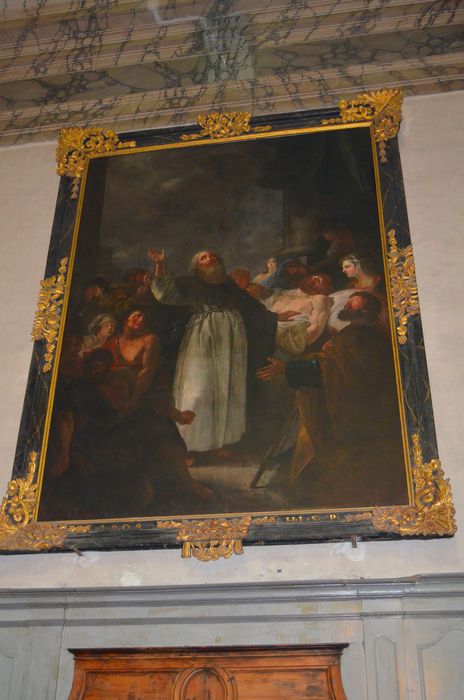 Le tableau est placé dans le transept sud. Il porte au dos la signature du peintre et la date : Mancini/fecit/1787.
