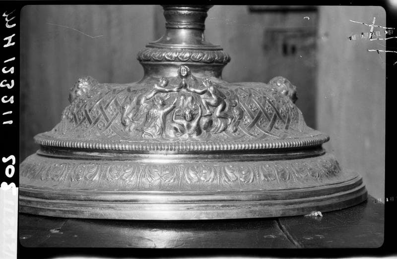 Décor sur la terrasse du pied : Annonciation au revers ; Assomption sur la face principale ; deux têtes d’anges ailés.