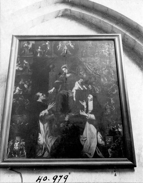 Vierge à l'enfant, remise : rosaire, saint Dominqiue, sainte Catherine de Sienne, scène : rosaire