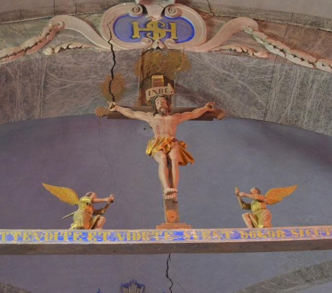 statue : Christ en croix ; statuettes : anges