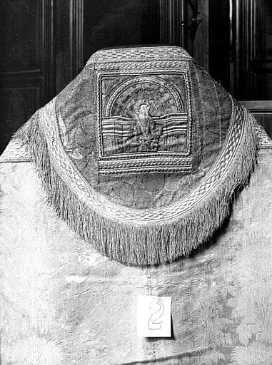 chasuble, 5 chapes, 2 dalmatiques, 2 étoles, 3 manipules et une bourse de corporal de Rostaing d'Ancezune, archevêque d'Embrun