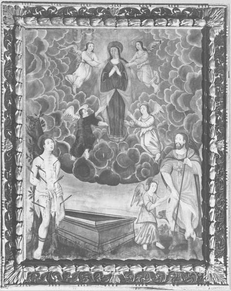 tableau, cadre : l'Assomption de la Vierge entre saint Sébastien et saint Roch