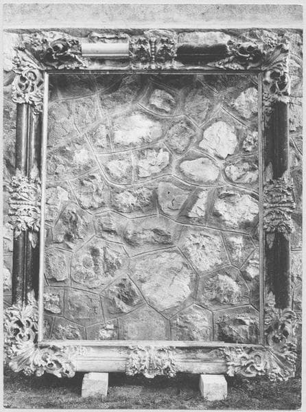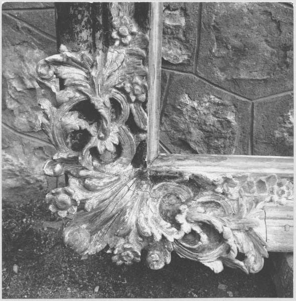 Bois doré, sculpté ; cadre rectangulaire.