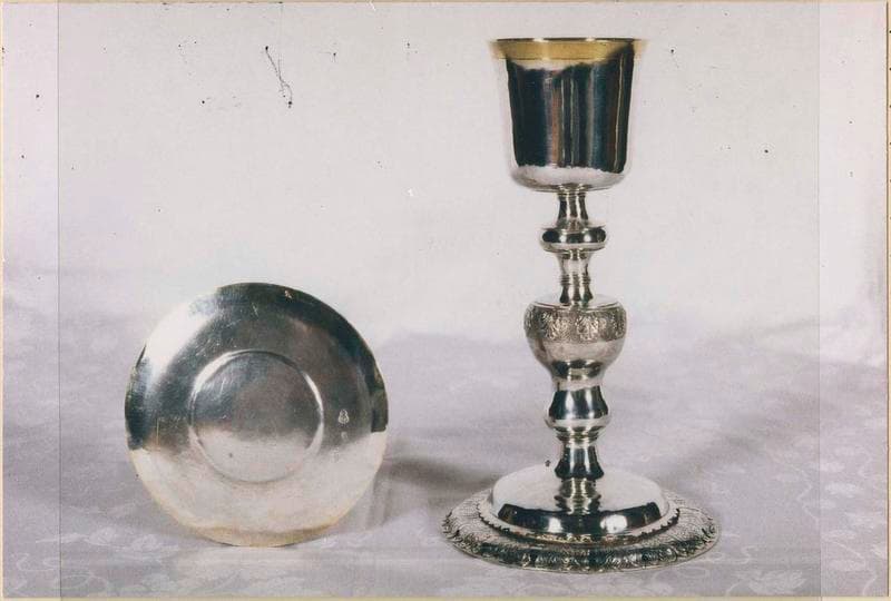 Calice et patène en argent. Calice : coupe en argent doré et pied en argent.