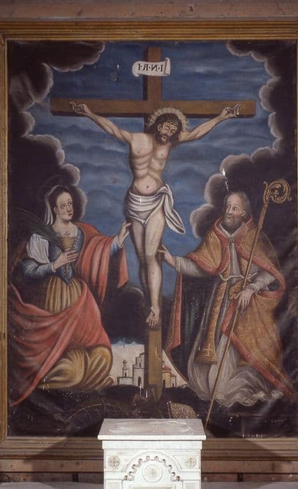 POP | Plateforme ouverte du patrimoinetableau : Crucifixion ou Christ en croix entre sainte Catherine et un saint Abbé