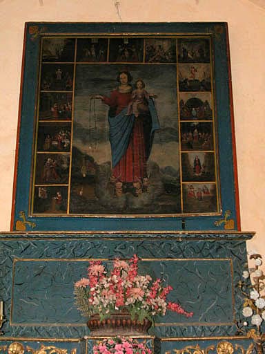 tableau d'autel : Vierge du rosaire ou Vierge et Enfant présentant un rosaire et scènes du rosaire