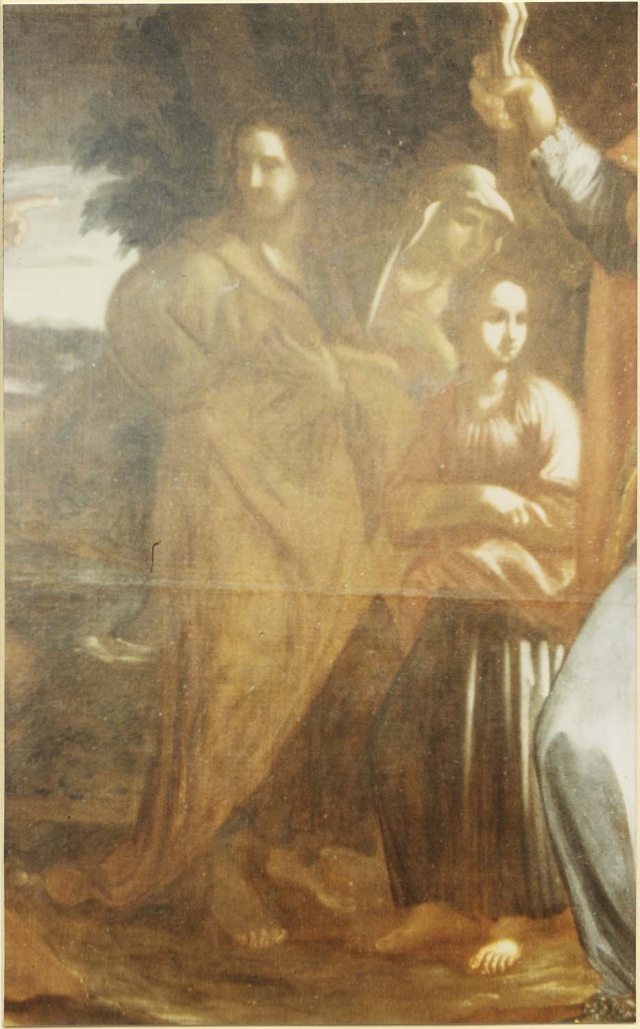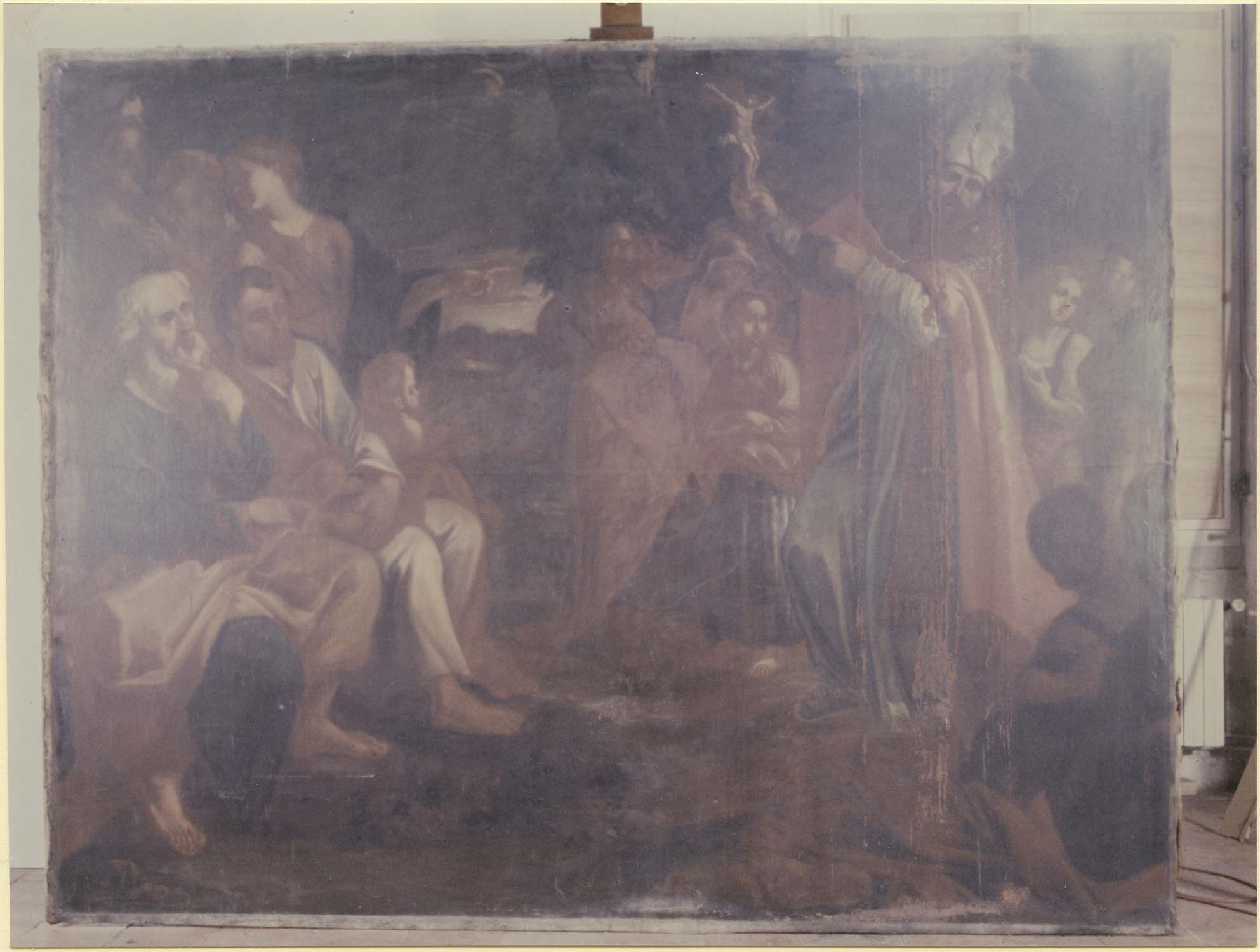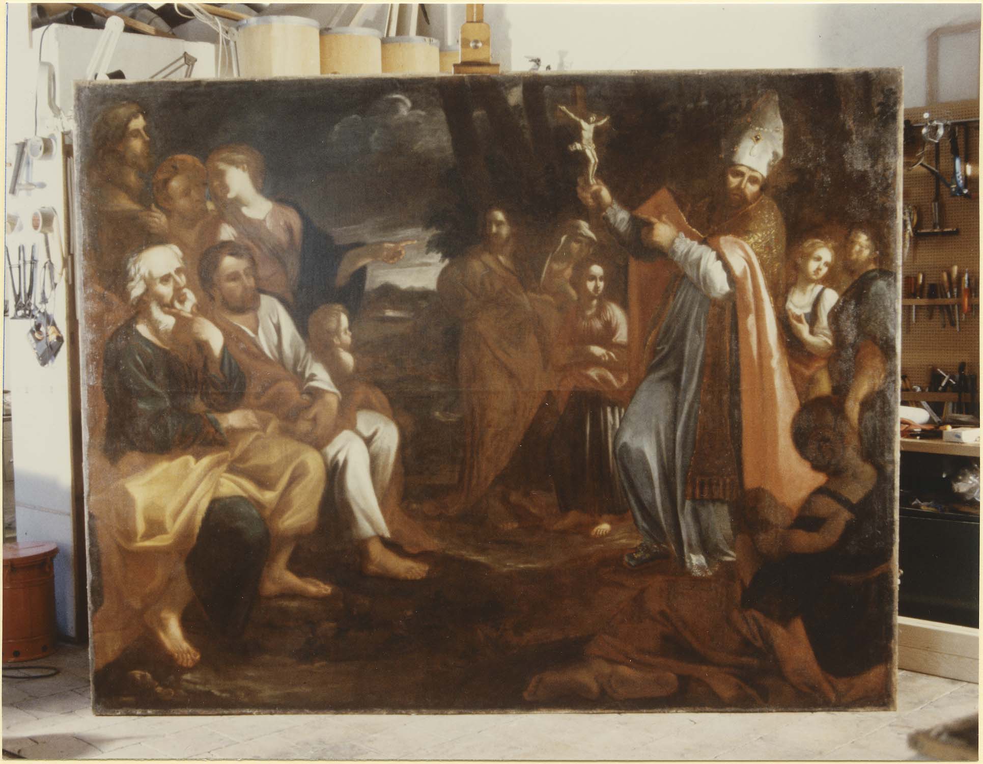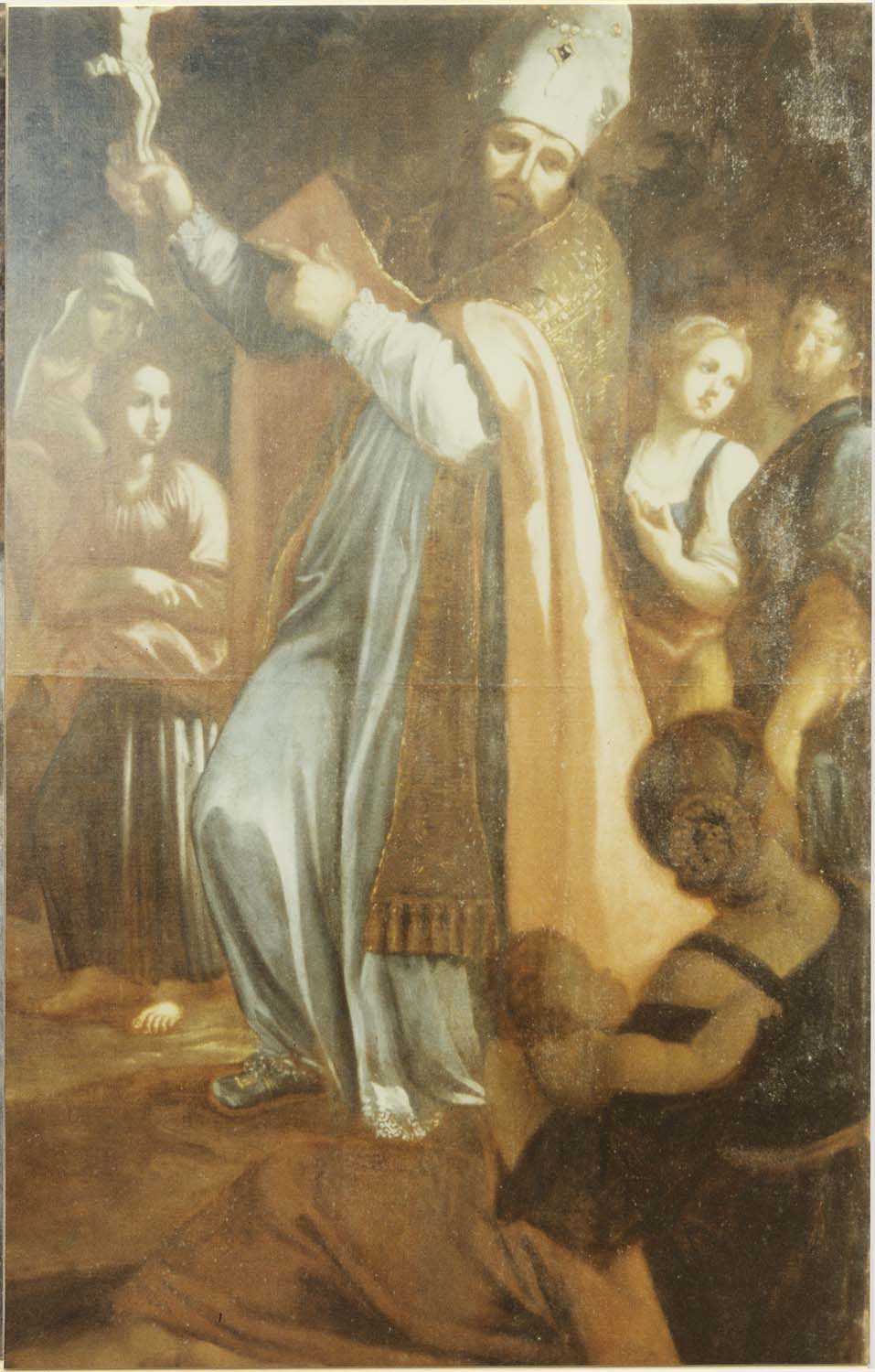 tableau et son cadre : saint Arnoux montrant le crucifix