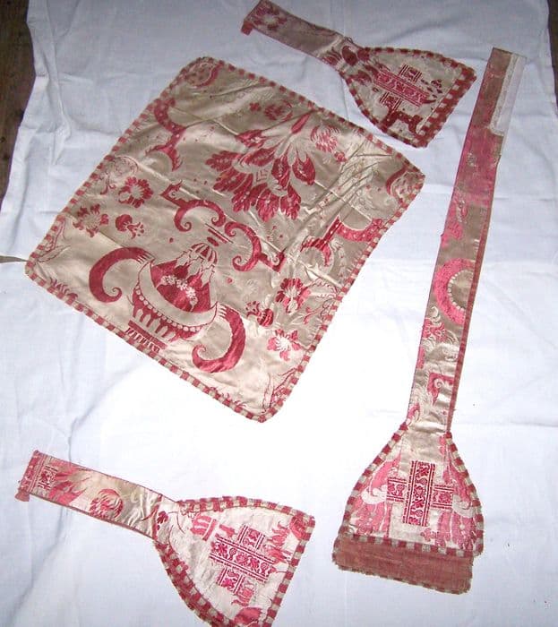 chasuble ; dalmatique ; voile de calice ; manipule (2) ; étole