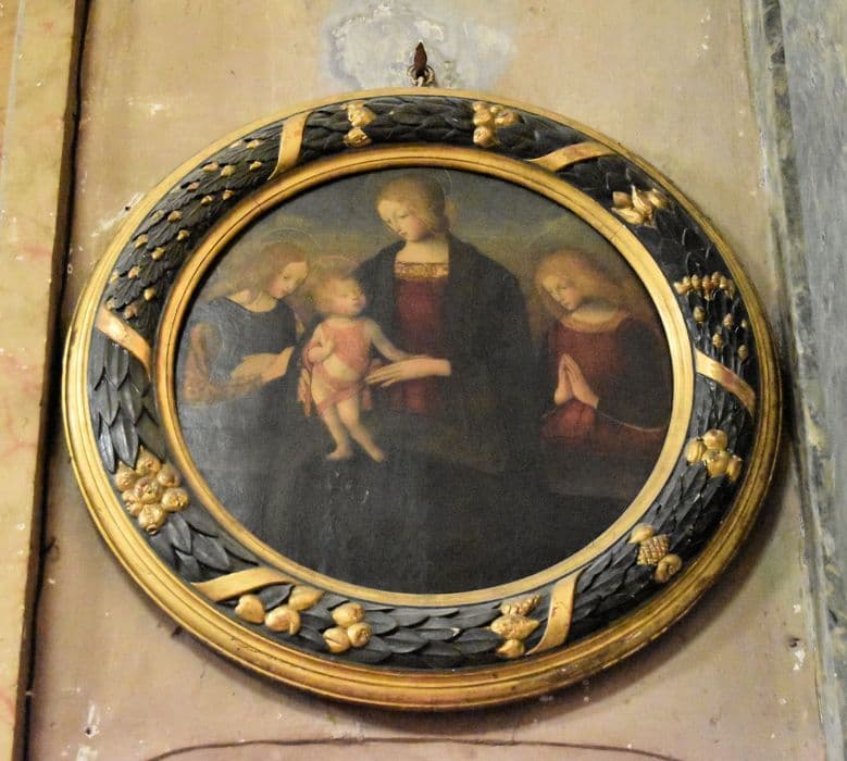 tableau, cadre : la Vierge à l'Enfant entre deux anges