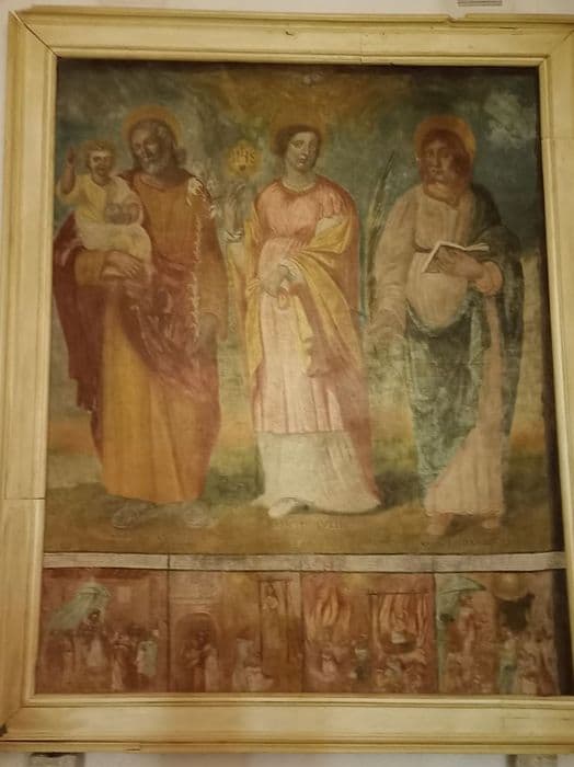 tableau : Sainte Julie de Nicomédie entre saint Joseph et saint Pancrace