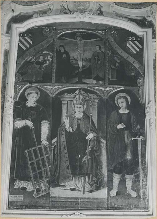 En partie inférieure : saint Claude entre saint Laurent et saint Pancrace.