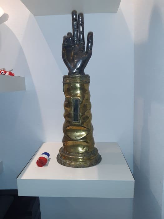 Sur la manche, une ouverture garnie d'un verre, qui permet de voir une relique du saint.