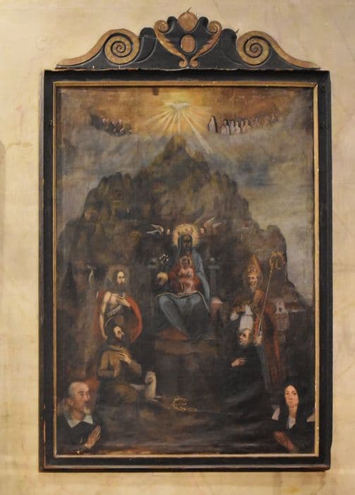 POP | Plateforme ouverte du patrimoinetableau, cadre : Vierge à l'Enfant entourée de divers saints et de deux donateurs dite la Vierge Noire