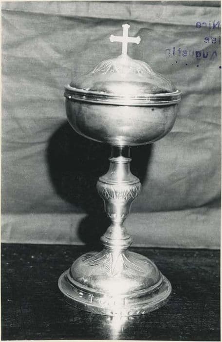 Pied circulaire décoré de grosses feuilles d'eau stylisées de même que le noeud en balustre et le couvercle de la coupe, campaniforme très évasé.