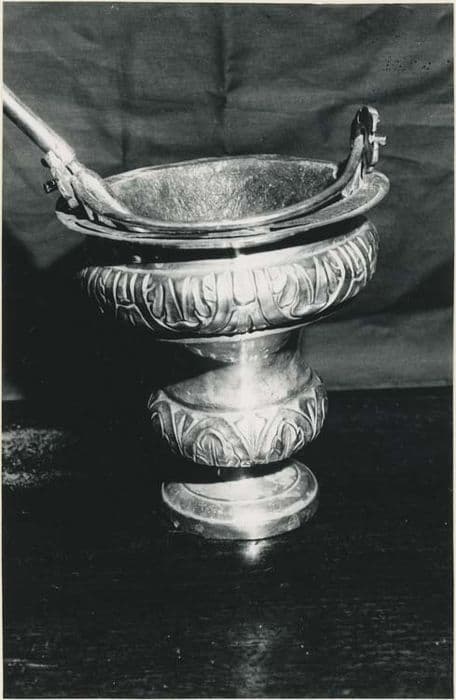 Bénitier en forme de récipient évasé décoré de frises de feuilles d'acanthes.
