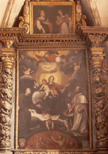 POP | Plateforme ouverte du patrimoineautel retable des Ames du Purgatoire, 2 tableaux : Saint Jean de Matha et saint Antoine de Padoue intercédant auprès de la Vierge pour les âmes du Purgatoire, Sainte Catherine d'Alexandrie et sainte Agnès