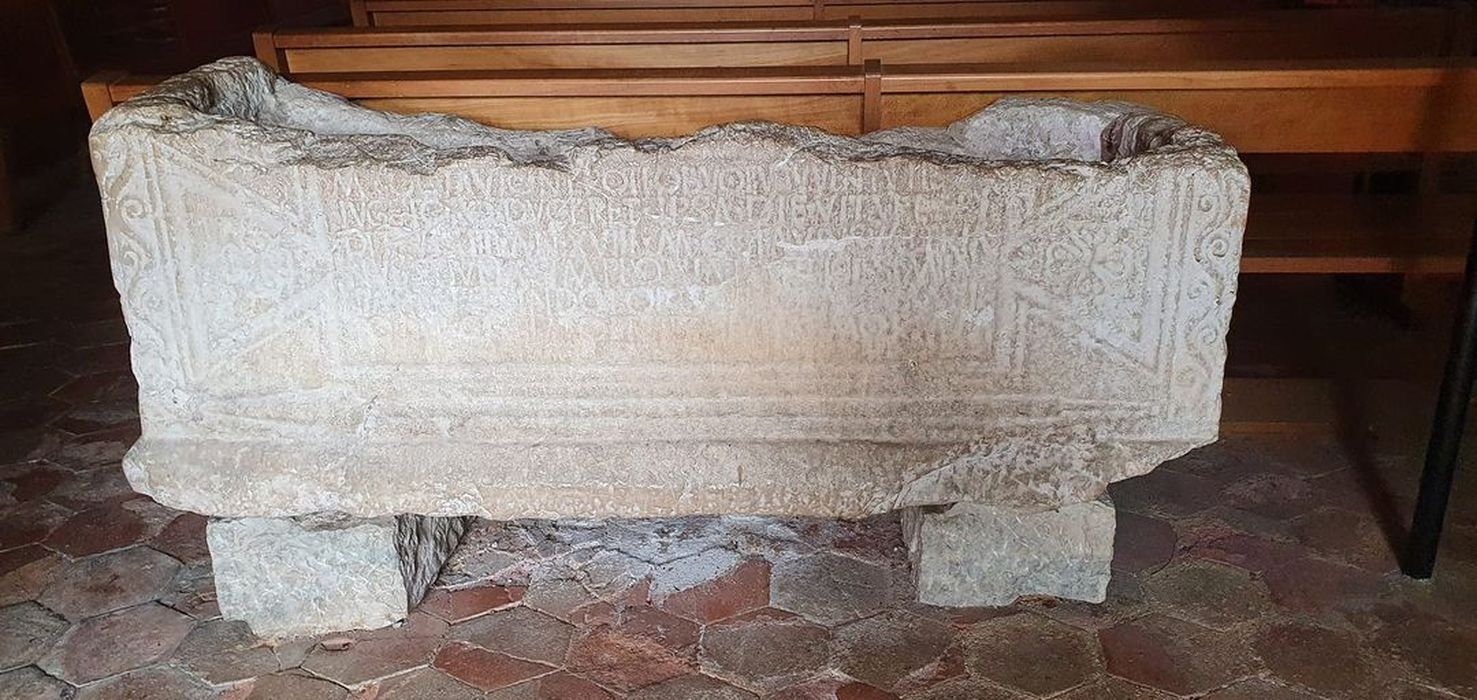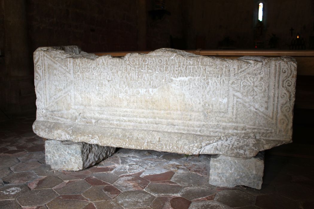 Inscription : M OCTAVIO NEPOTI OB VOTV IVVENTVTIS LVCE FORO DVCERET IPSA DIE VITA PERDI DIT VIXIT AN XVIII M OCTAVIVS VALERIA NVS ET IVLIA SAMPRONIA INFELICISSIMI PARENTES IN DOLORIS SVI SOLATIVM FIL IO DVLCISSIMO ET SIBI VIVIS MEMORIAM FECERVNT A MARCVS OCTAVIVS NEPOS, traduisible par Il perdit la vie âgé de dix-huit ans, le jour même où, suivant le voeu de sa jeunesse, il allait consacrer au forum l'entrée dans son âge viril. Marcus Octavius Valérianus et Julia Sempronia, ses infortunés parents, dans la douleur, pour leur soulagement, ont élevé ce monument, de leur vivant, à la mémoire de leur fils bien-aimé et pour eux-mêmes.