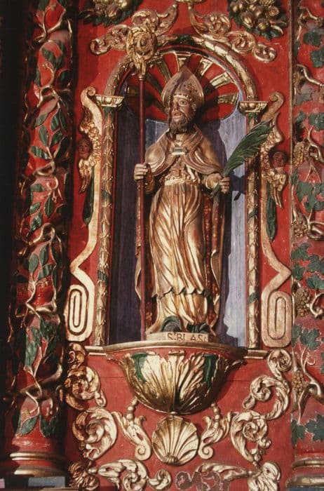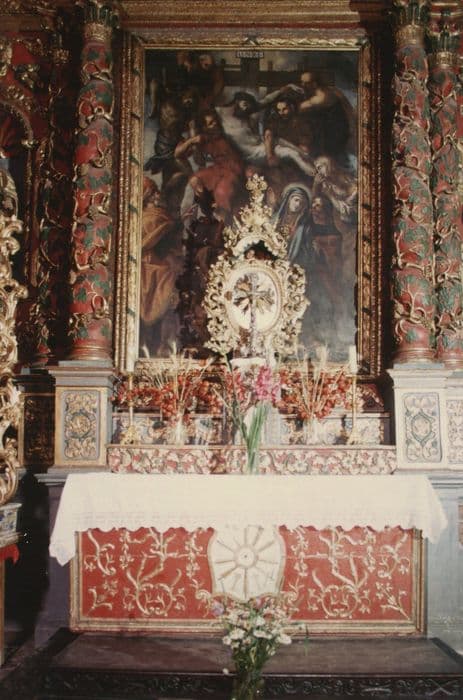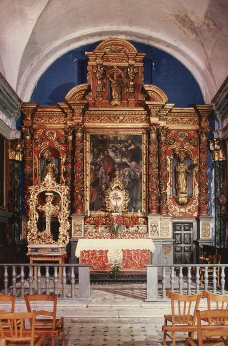 POP | Plateforme ouverte du patrimoinemaître-autel, retable, devant d'autel, gradins d'autel, tabernacle, bas-relief, tableau : la Descente de Croix, 2 statues : Saint Eloi, Saint Blaise, croix d'autel, 6 chandeliers, groupe sculpté : le Christ mort, clôture (table de communion)