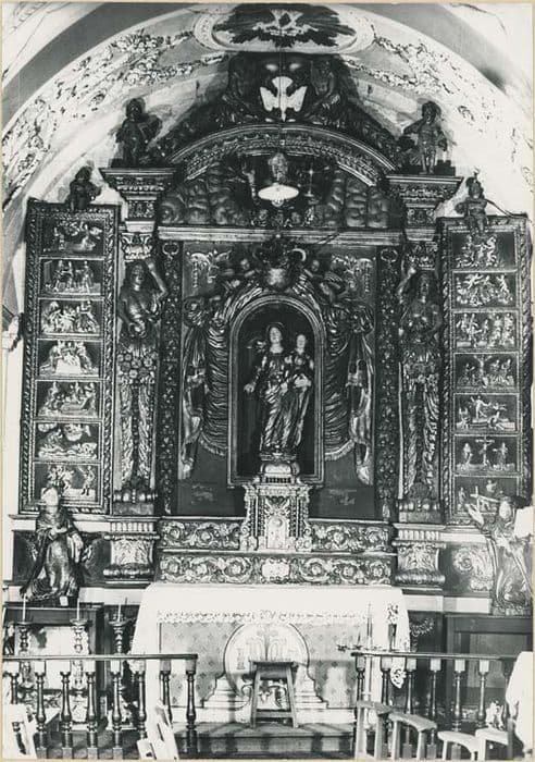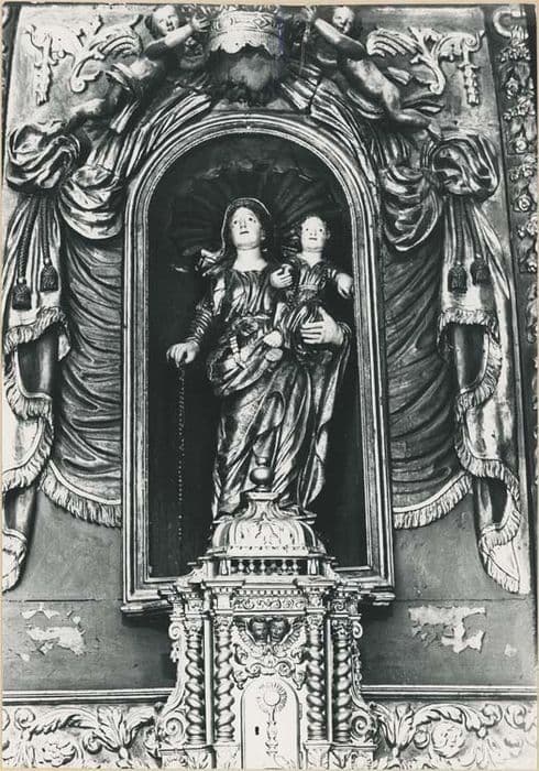 POP | Plateforme ouverte du patrimoineautel et retable de la Vierge-du-Rosaire, tabernacle, gradin, statue : Vierge à l'Enfant, cadre, 2 tableaux : les Mystères du Rosaire