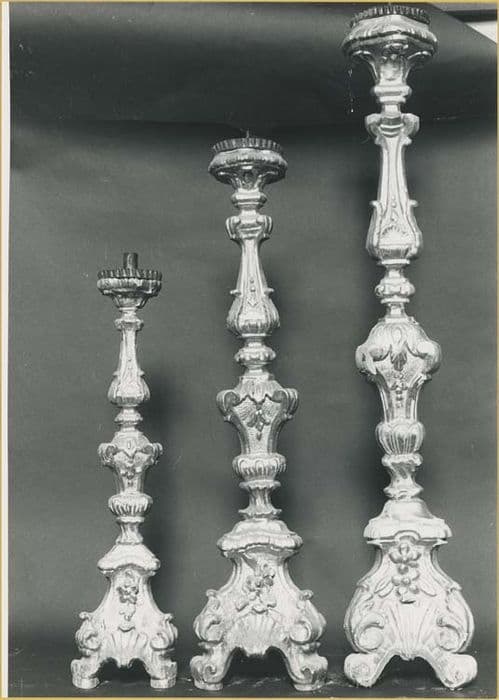exposition, croix d'autel et 14 chandeliers, canon d'autel