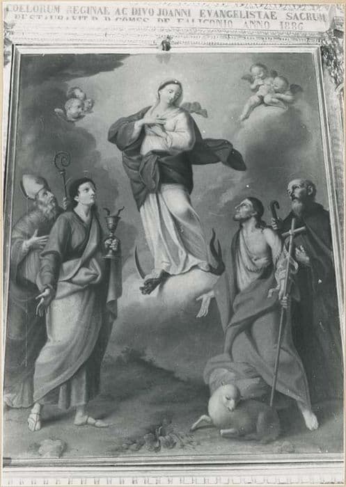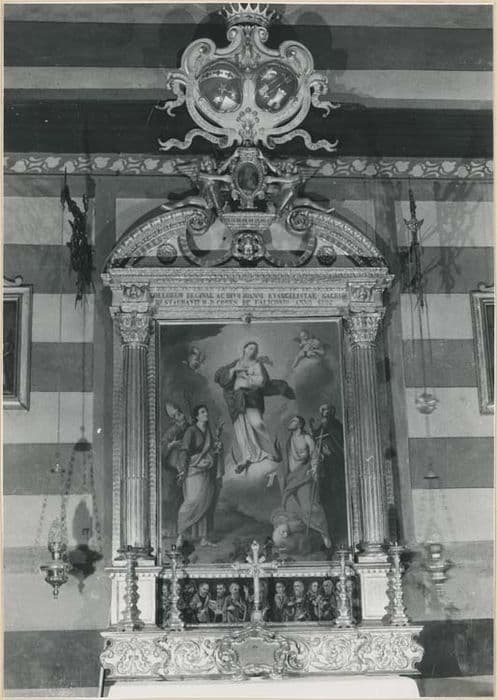autel et retable de la Vierge Immaculée, prédelle : le Christ entre les apôtres, tableau : la Vierge Immaculée entre saint Antoine ermite et un saint Evêque, ainsi que saint Jean l'évangéliste et saint Jean-Baptiste