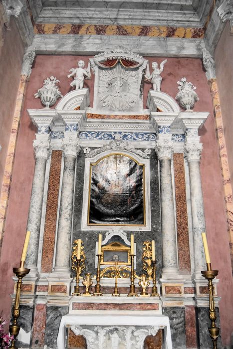 Retable de la fin du 17e siècle ou bien de la fin du 18e siècle (?), et toile du 18e sièlce.