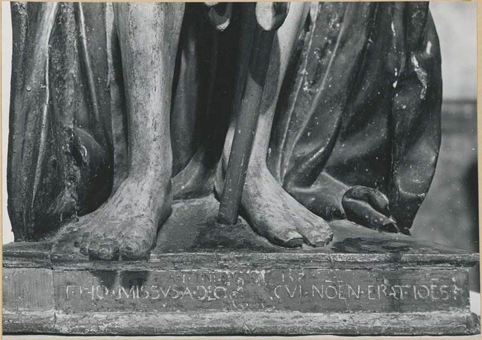 Statue signée de Matheus Dauvers, architecte vraisemblable de l'église de Colmars.