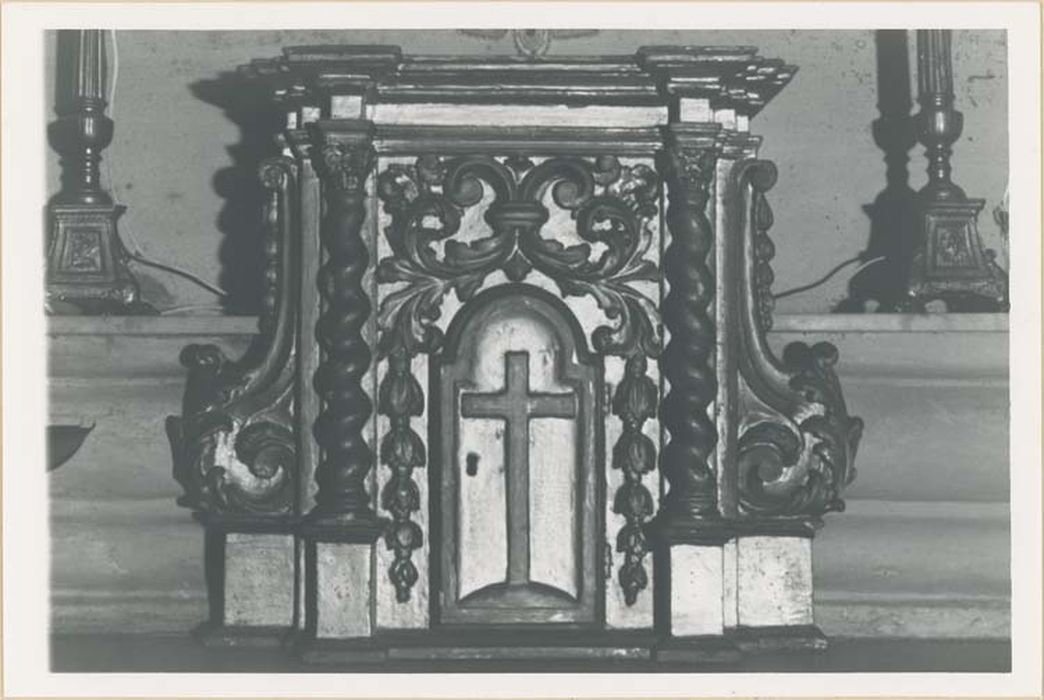 500 h ; 440 la ; 100 pr (Dimensions de la toile : h = 240, la = 175) ; Dimensions du tabernacle : h = 57, la = 54, pr = 37