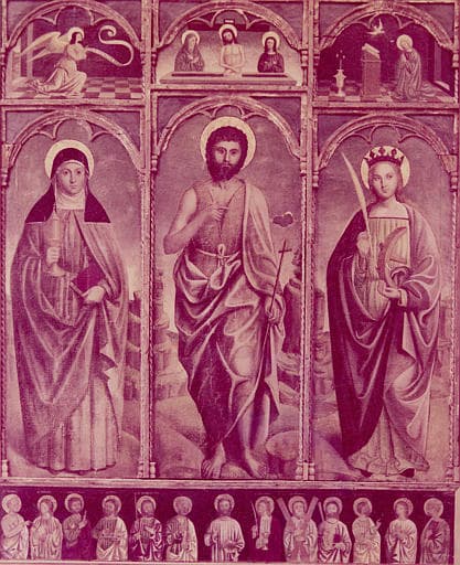 retable, tableaux : Saint Jean Baptiste, sainte Claire et sainte Catherine
