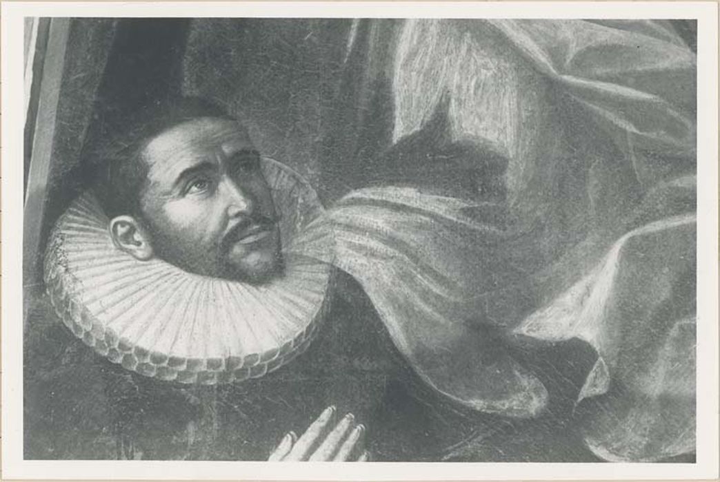 POP | Plateforme ouverte du patrimoineautel retable de la Crucifixion, tableau : le Christ en croix entre la Vierge et saint Jean, avec les deux donnateurs