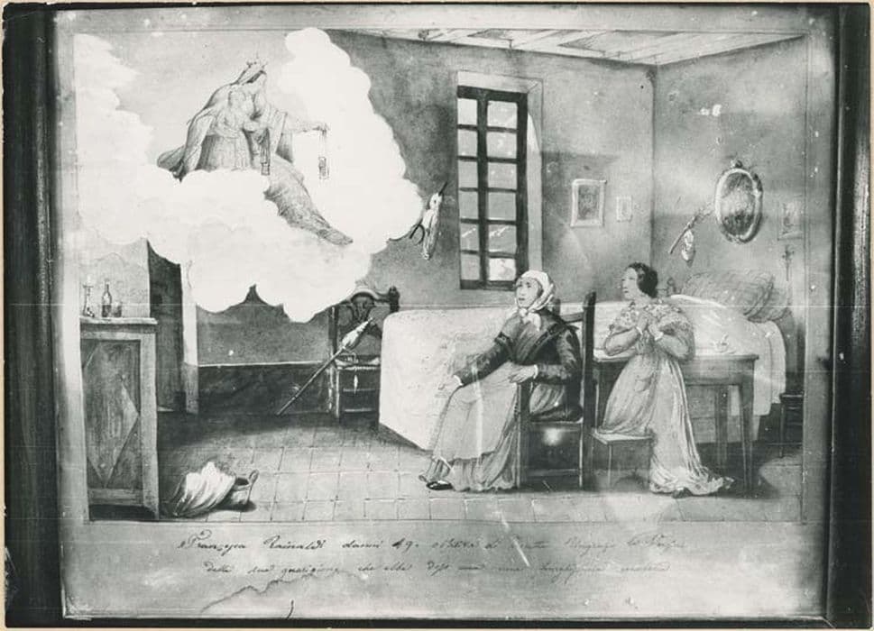 POP | Plateforme ouverte du patrimoinetableau ex-voto : Femme priant dans une chambre