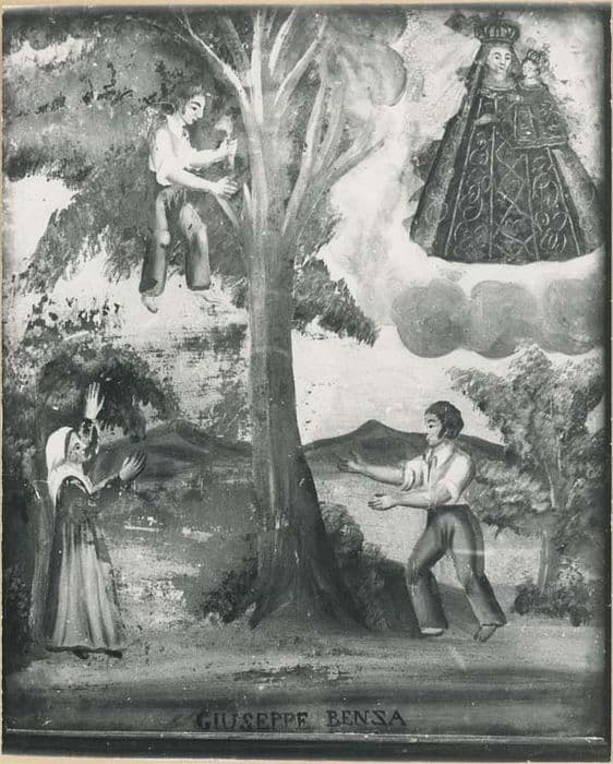 tableau ex-voto : Jeune homme tombant d'un arbre