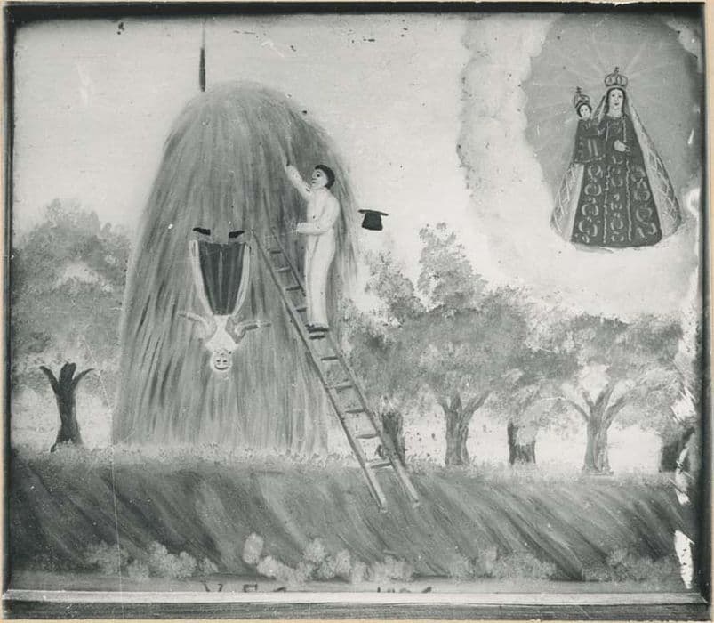 tableau ex-voto : Jeune fille tombant d'une meule de foin