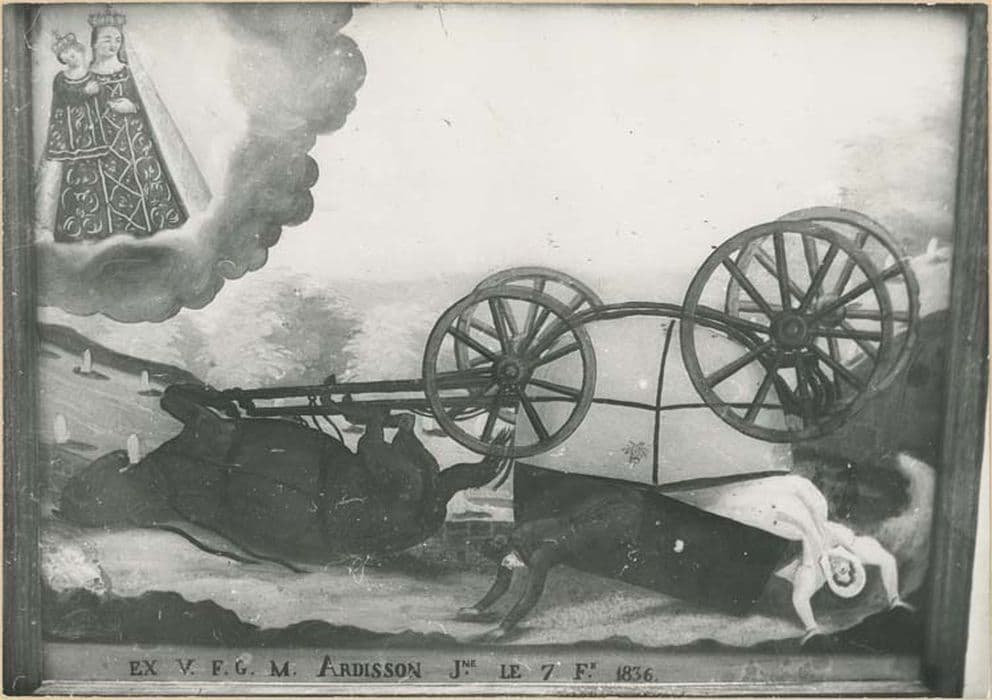 POP | Plateforme ouverte du patrimoinetableau ex-voto : Fiacre renversé au bord d'une route
