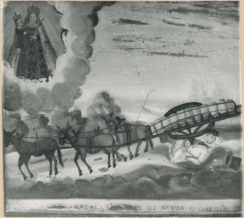 POP | Plateforme ouverte du patrimoinetableau ex-voto : Homme coincé sous une charrette renversée
