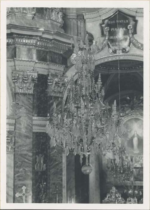 Luminaires de la chapelle : un grand lustre, un lustre de choeur, quatre lustres latéraux, six girandoles.
