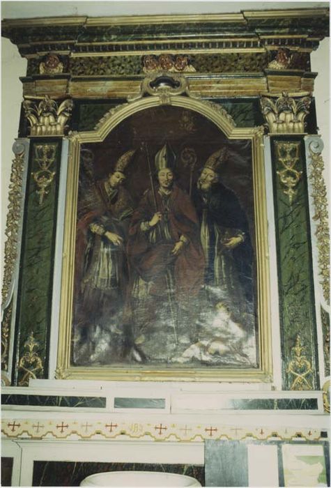 Arrêté : Retable et autel : tableau 'Saint Pons, saint Claude et saint Eloi', huile sur toile, encadrement en bois peint, XVIIe siècle.