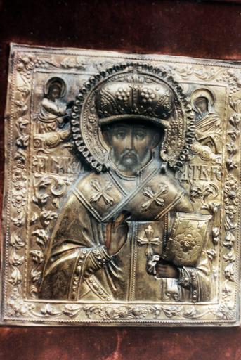 icône : saint Nicolas le Thaumaturge avec le Sauveur et la Mère de Dieu