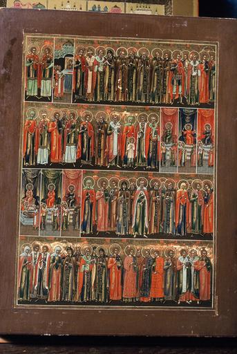 POP | Plateforme ouverte du patrimoinecalendrier liturgique : six icônes représentant les saints de chaque mois de Juillet à Décembre