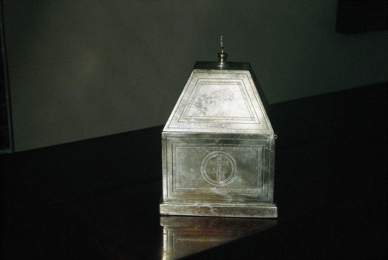 Argent, motifs ciselés. Tabernacle en argent en forme de sarcophage. Encensoir de voyage en argent.