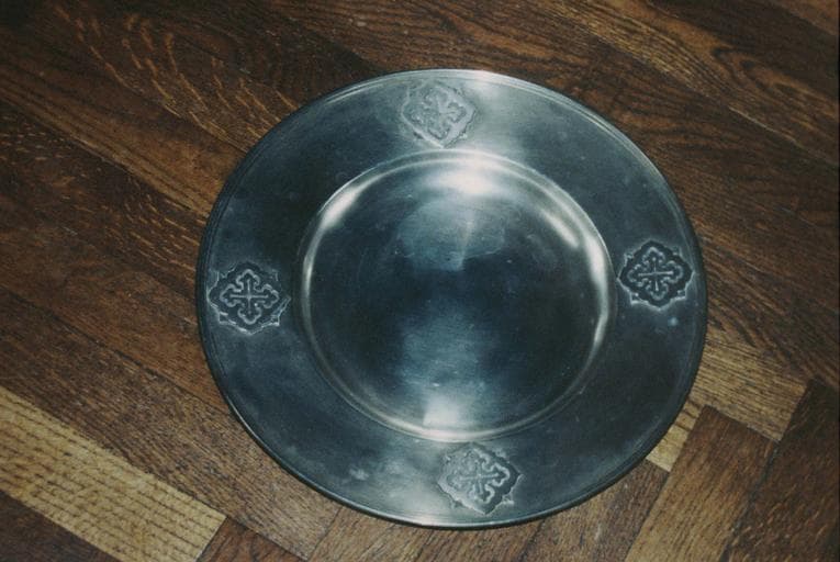Plat circulaire orné de quatre motifs cruciformes en argent massif.