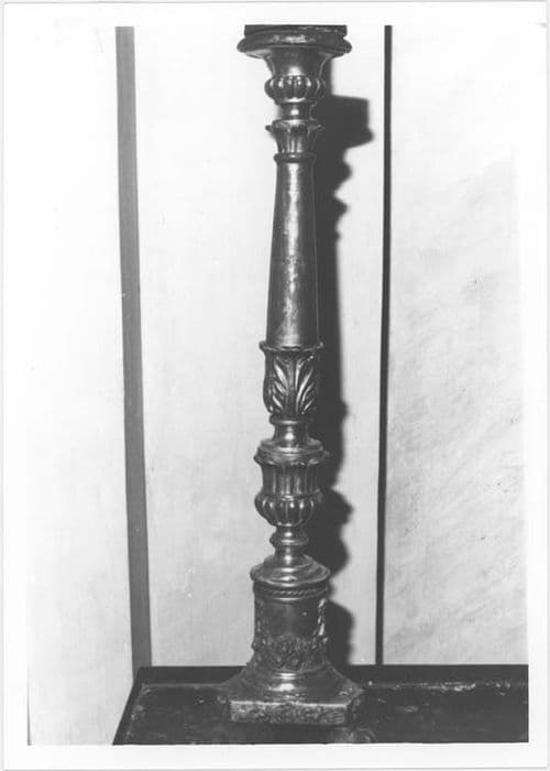 Une paire de chandeliers repose sur une base triangulaire et l'autre sur une base cylindrique