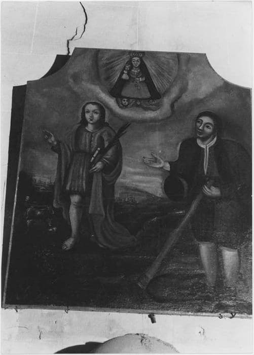 tableau : saint Pancrace et saint Isidore entourant la Vierge (Notre Dame de Laghet)