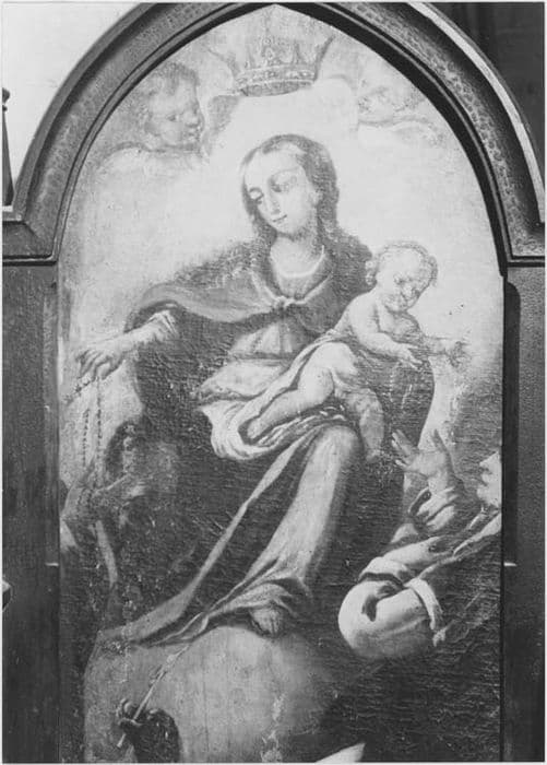 fauteuil de célébrant avec tableau : Donation du rosaire