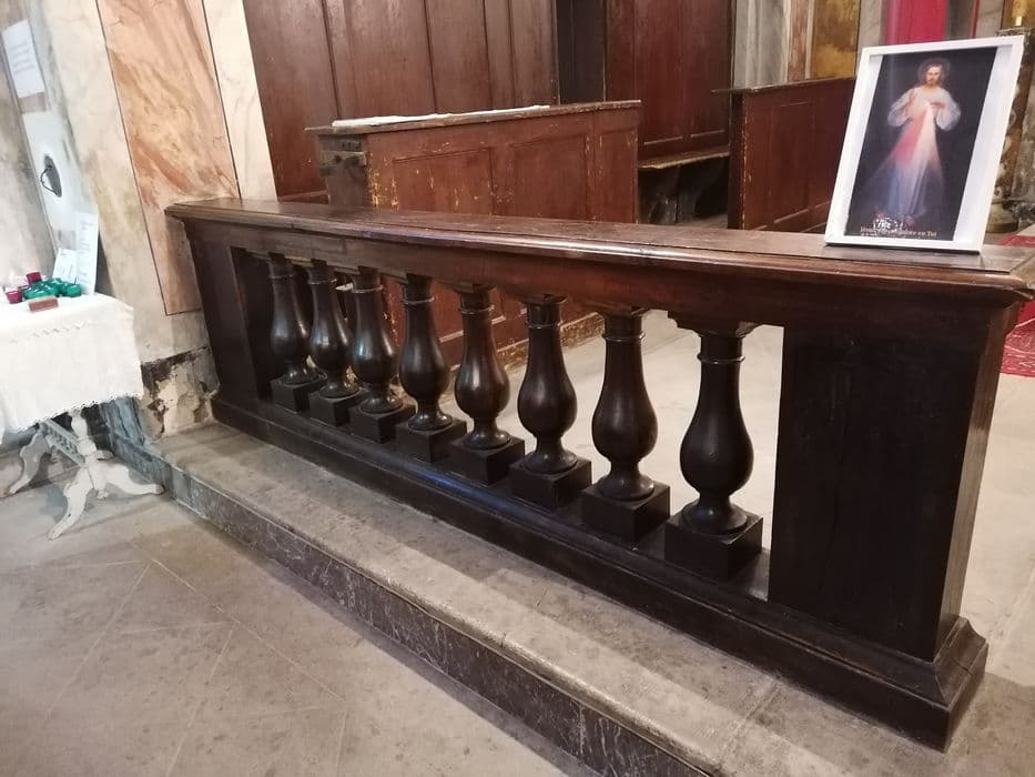 Balustrade de type classique, en deux parties et encadrant l'entrée du choeur. Les balustres sont dans le style du XVIIe siècle.